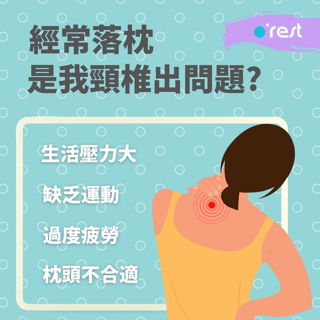 壓力其實很容易是造成落枕的主因唷,當你的生活充滿壓力,睡覺的時候會下意識或無意識的感到緊張的感覺,使得身體僵硬,這時候當你想翻身,肌肉太緊繃,身體卻跟不上,因此就會發生落枕的狀況發生。