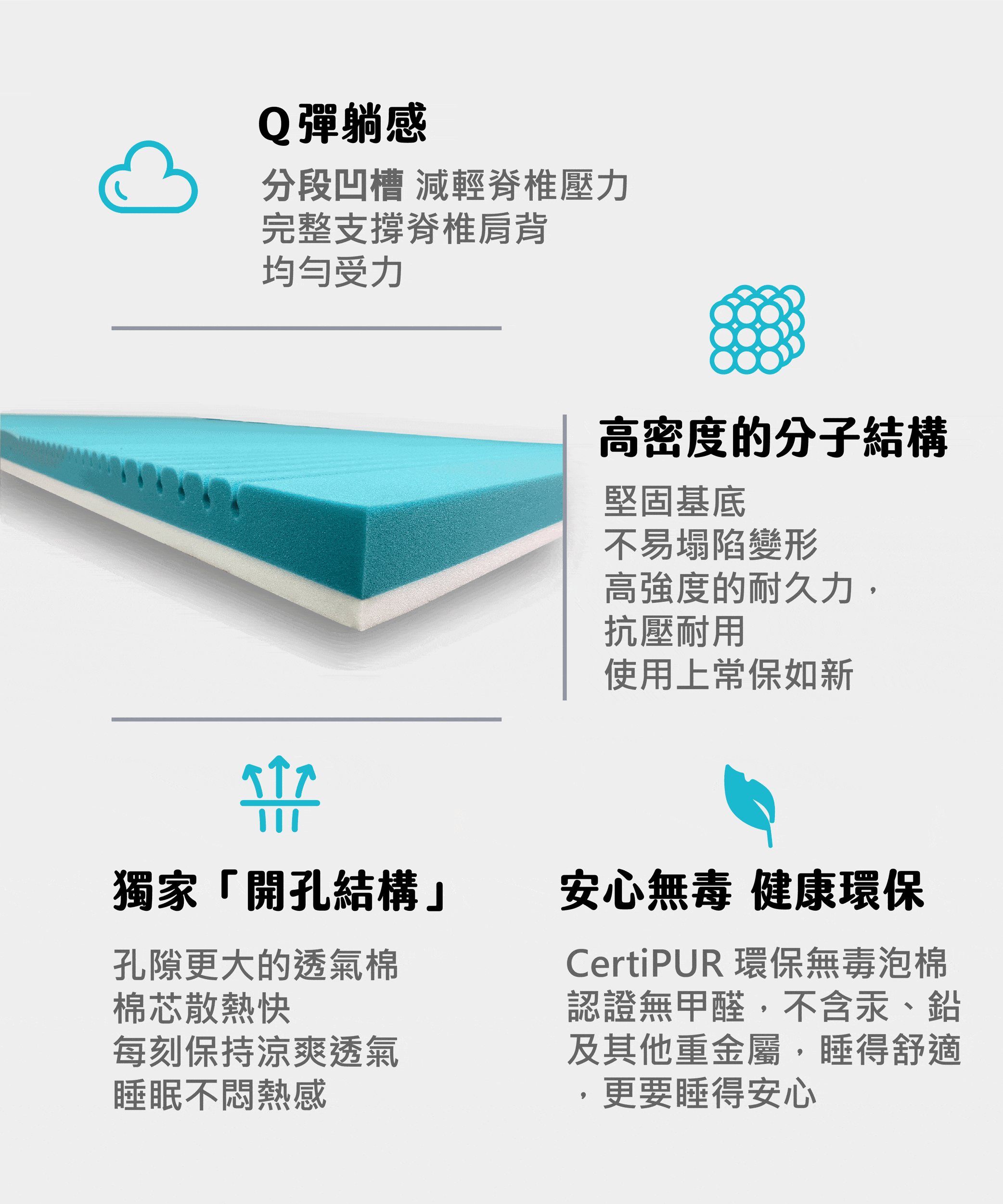 ● 分段凹槽 Q彈躺感