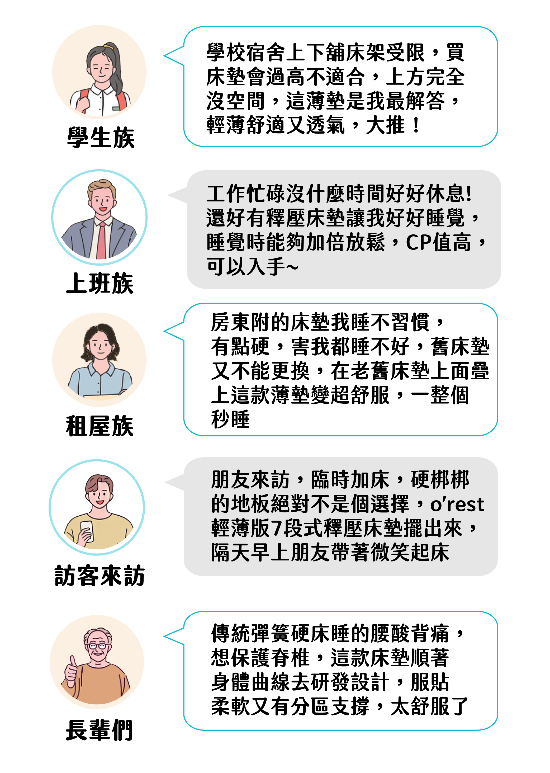 ● 上班租屋族、學生族上下舖、訪客來訪、改善硬床必備