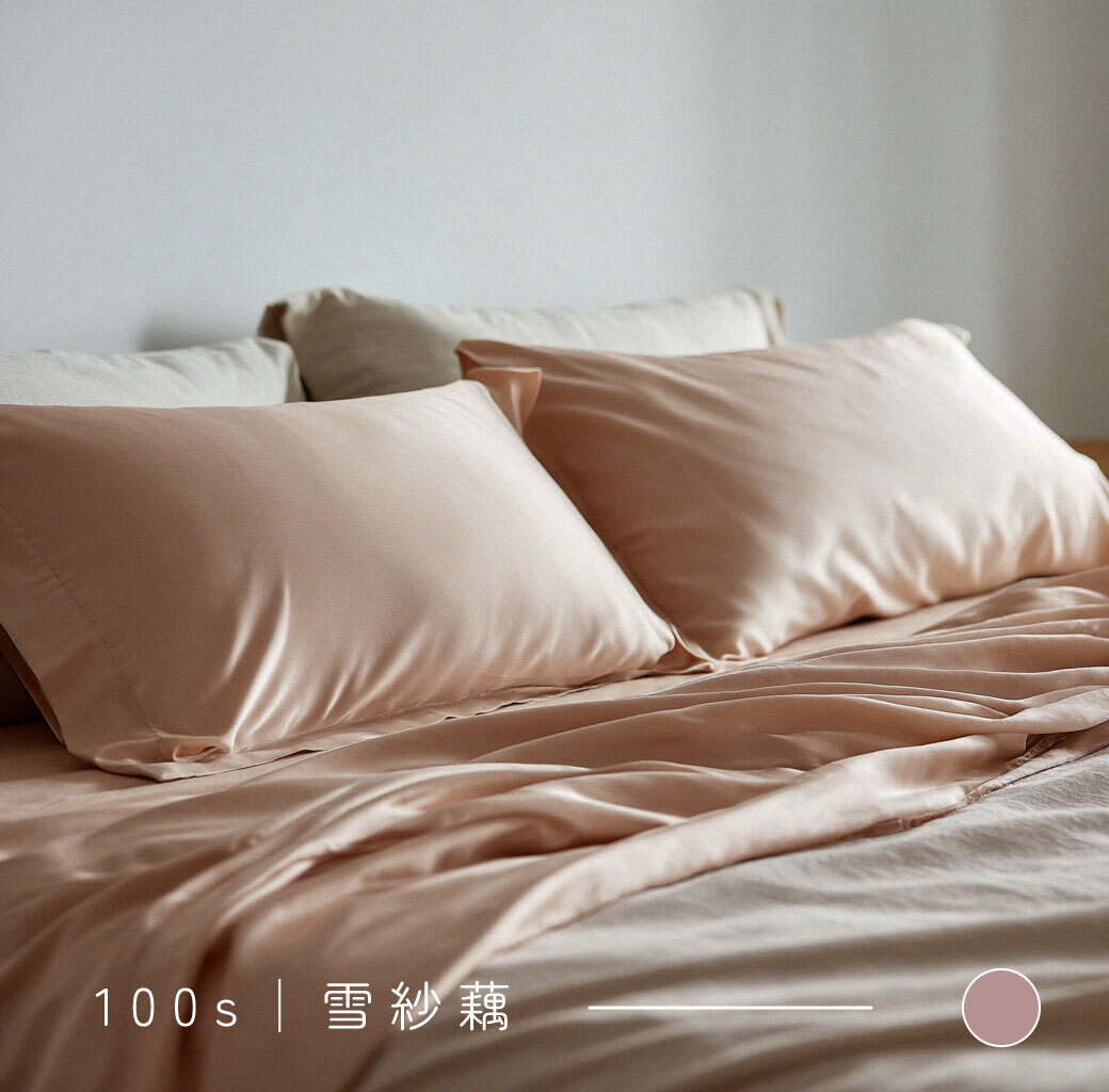 100 支是裸睡的神器,觸感是為了深層睡眠而生,無人打擾的秘密基地,傳達出比「休息」更深層次的「寧靜」,專屬於頂級你的睡眠體驗,這是天絲工藝的頂點