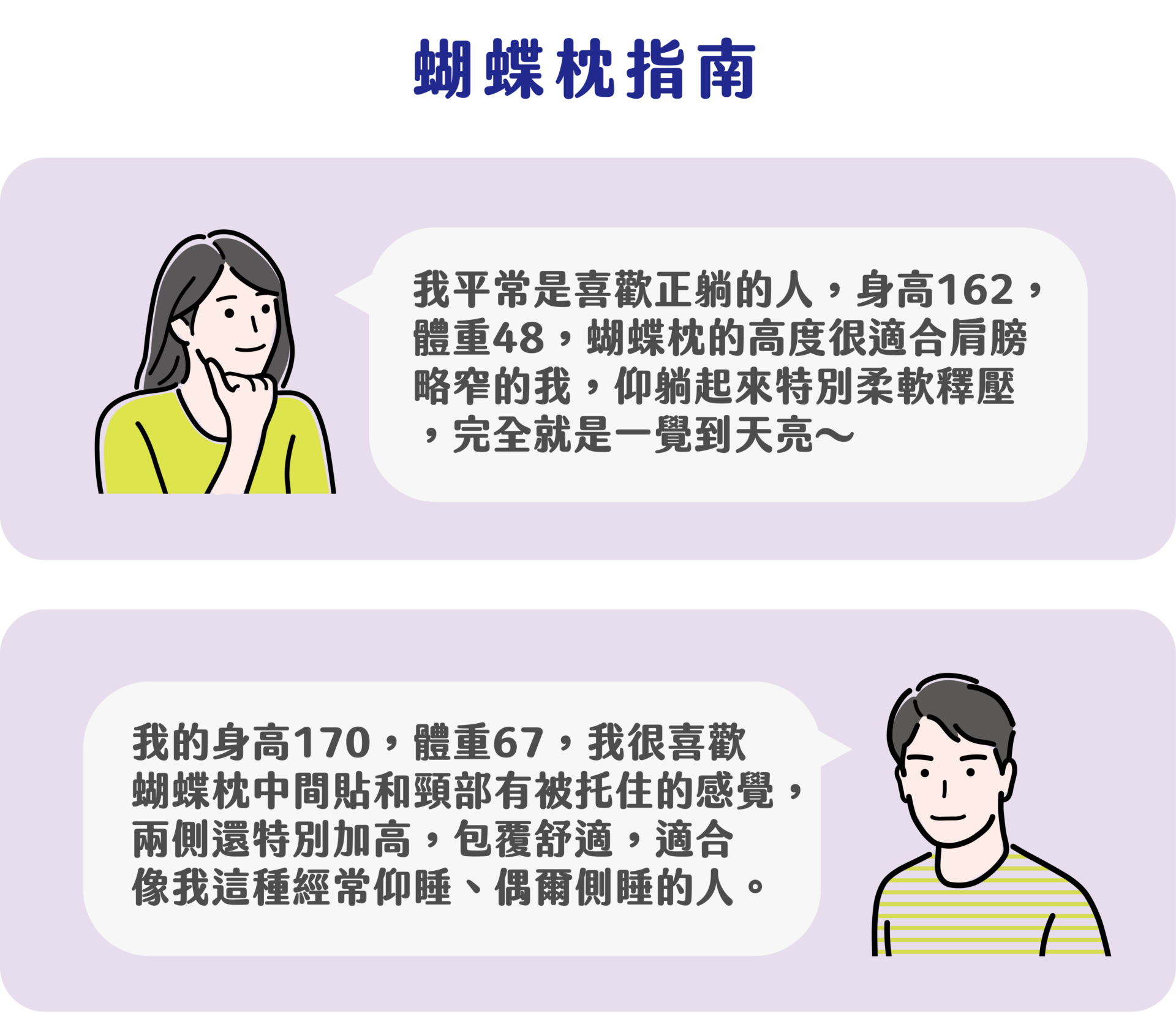 蝴蝶型頸部兩側稍微向前傾攜設計,提供頸部舒適支撐並安定頭部,特別針對仰睡的您,舒緩頸椎壓力。我們的記憶泡綿,通過了CertiPUR認證,代表泡綿符合對環境保護的標準。