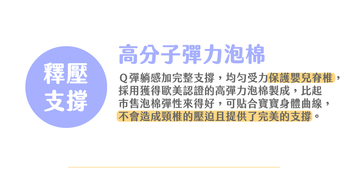 Q彈躺感,分段凹槽,完整支撐寶寶脊椎肩背,均勻受力