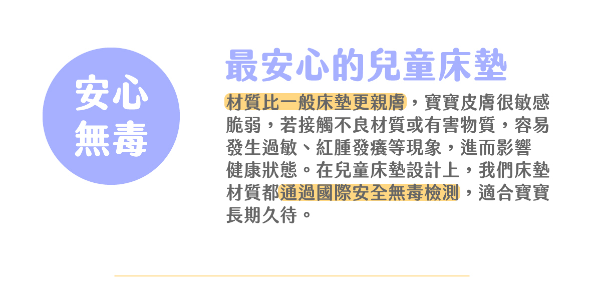 材質都通過國際安全無毒檢測,適合寶寶長期久待。