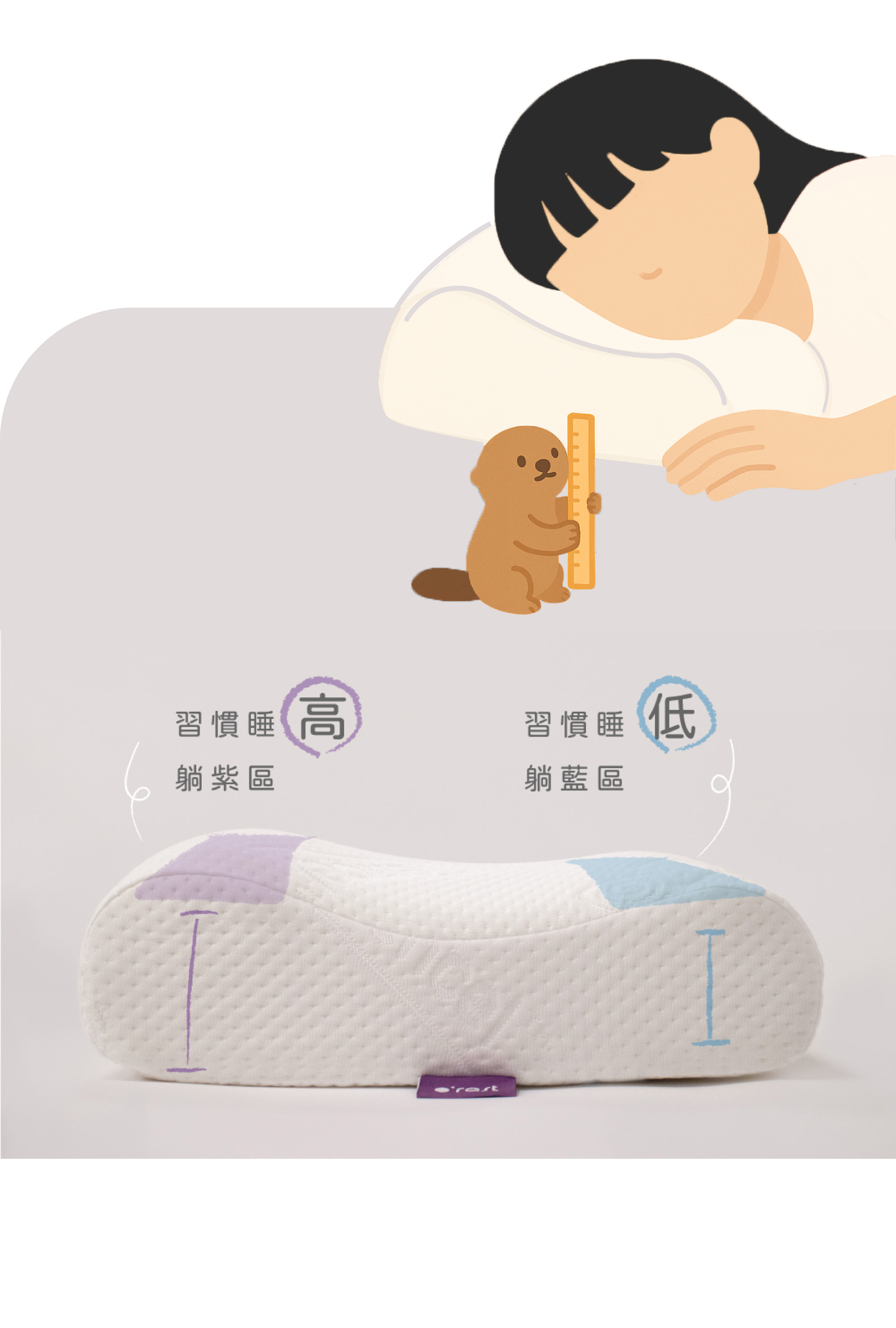 專為習慣側睡使用者設計,讓你每一次側身,都被接住!人體工學分區設計,幫助睡眠時,釋放頭部及頸部的重力負擔,解決變換姿勢頭頸部肌肉無法獲得支撐的困擾,助於不同睡姿的肌肉舒緩。