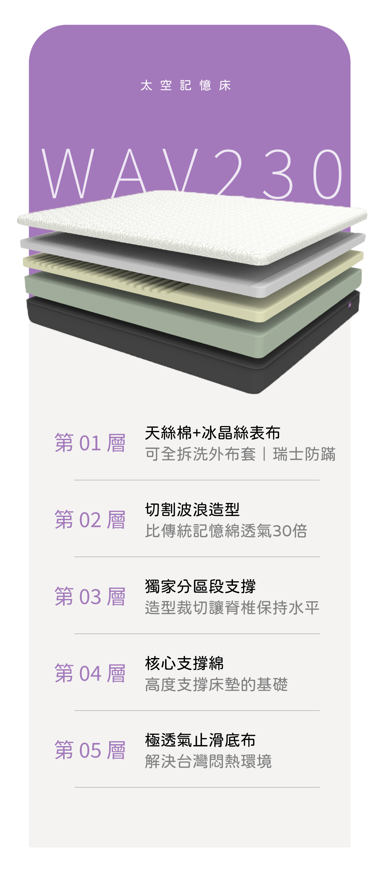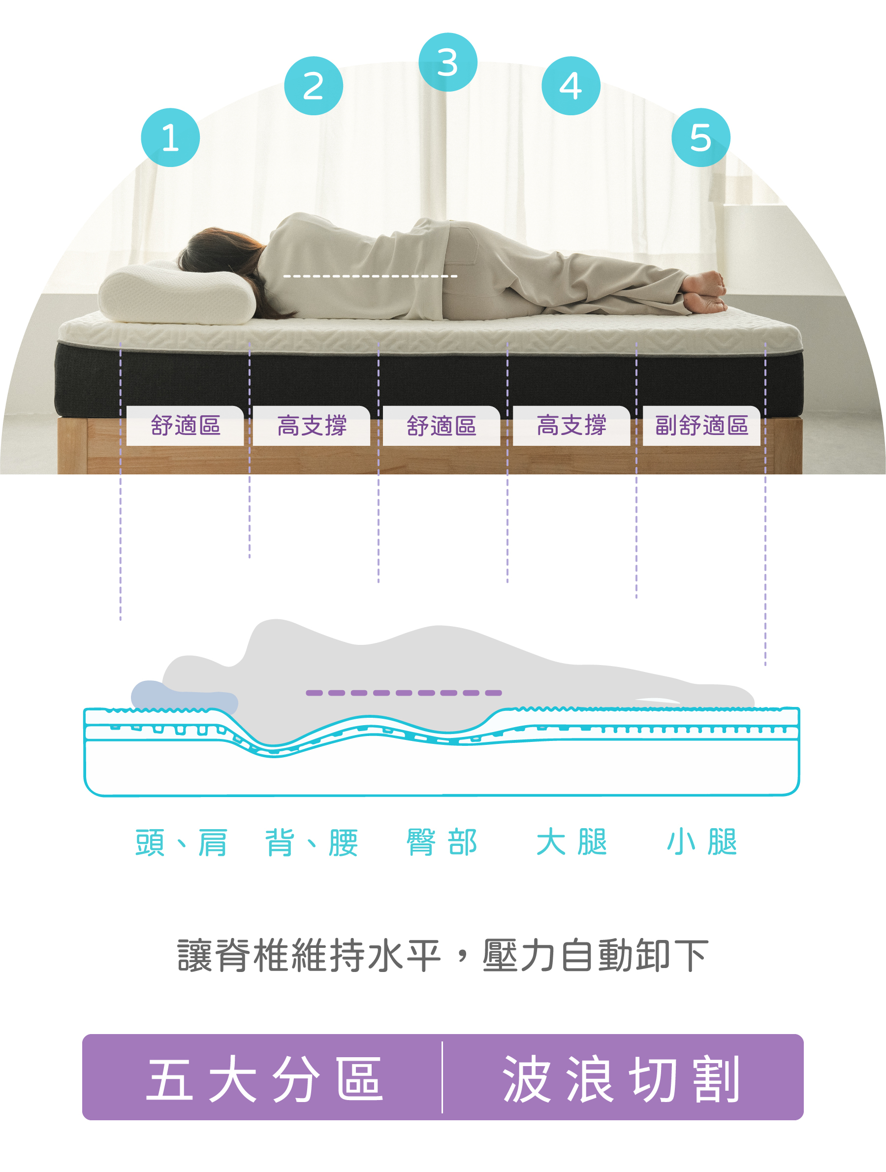 · 結合「高密度釋壓記憶棉」與「高分子彈力綿」,打造無重力般舒適體感