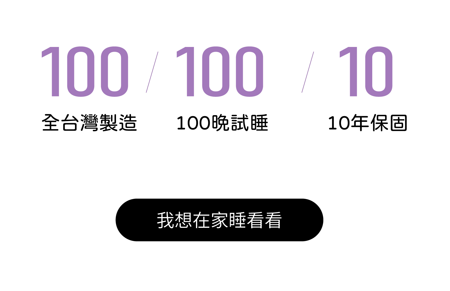 · 100% 台灣製造|提供 100 天試睡| 10 年保固